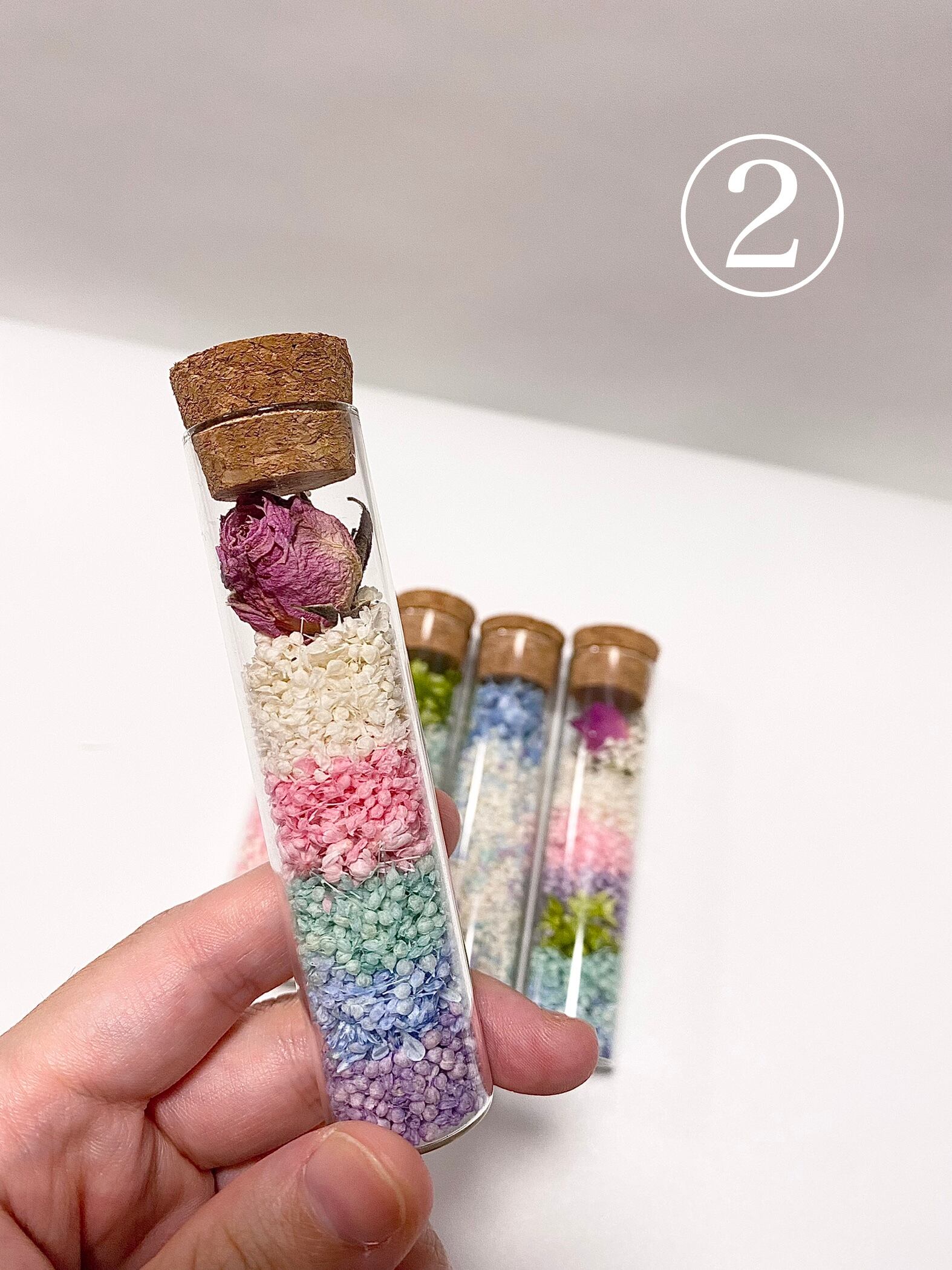 ※①.②は配送中に中身が混ざる可能性がありますのでご理解の上ご購入下さい。ご自身で振って混ぜてみてもカラフルさを楽しめる作品となっています。